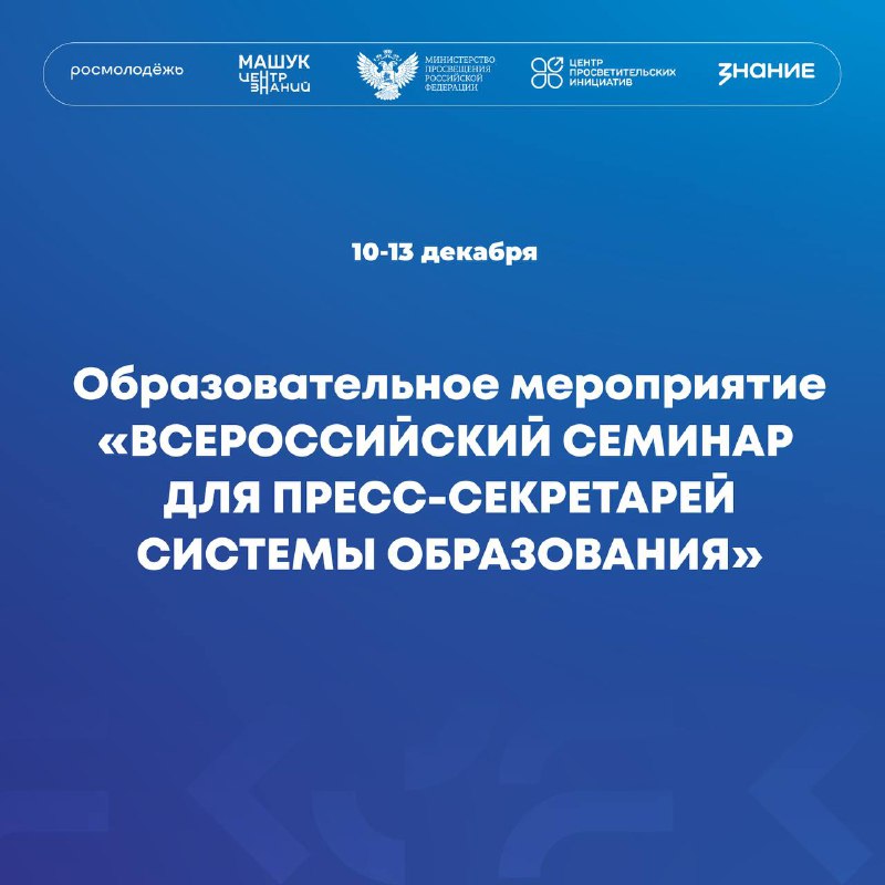 Мероприятие проходит с 10 по 13. Организаторами выступают Минпросвещения России, Центр просветительских инициатив Министерства просвещения РФ и Центр знаний «Машук». Участие в семинаре принимают более 150 специалистов по информационному сопровождению со всей страны. В первый день работы перед собравшимися выступил Министр просвещения РФ Сергей Кравцов.