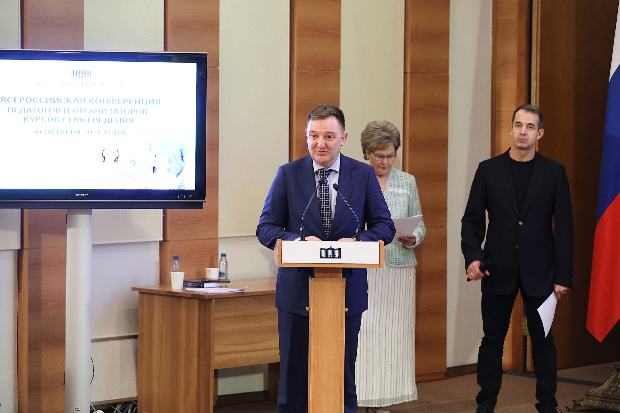В Государственной Думе 10 октября прошла Всероссийская конференция педагогов и организаторов курсов семьеведения. На ней выступили первый заместитель Министра просвещения РФ Александр Бугаев и заместитель Председателя Госдумы Анна Кузнецова.