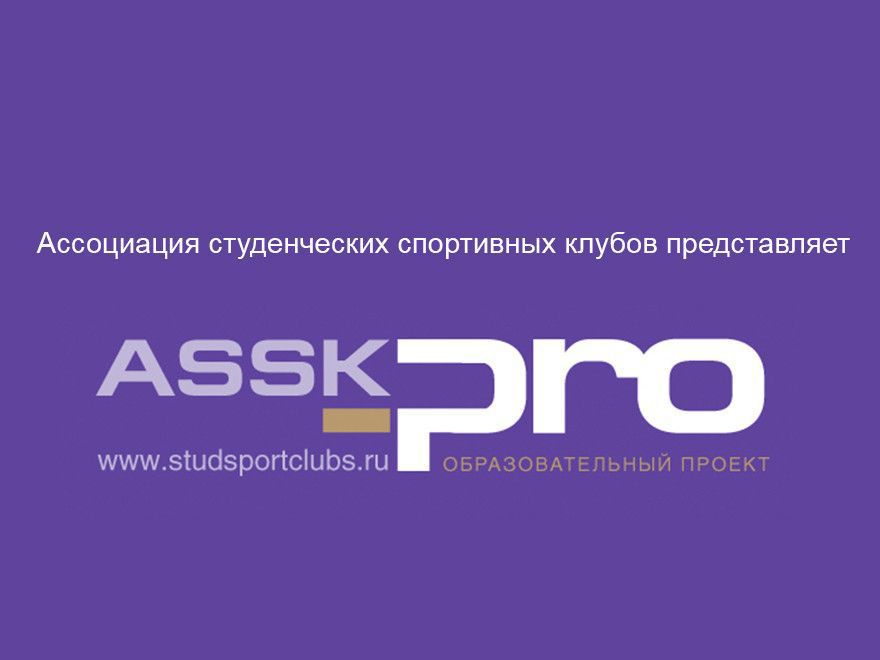 Ассоциация студенческих спортивных клубов России приглашает молодых людей (16-30 лет) к участию в образовательном проекте «АССК.pro». Он состоит из образовательной и конкурсной частей.